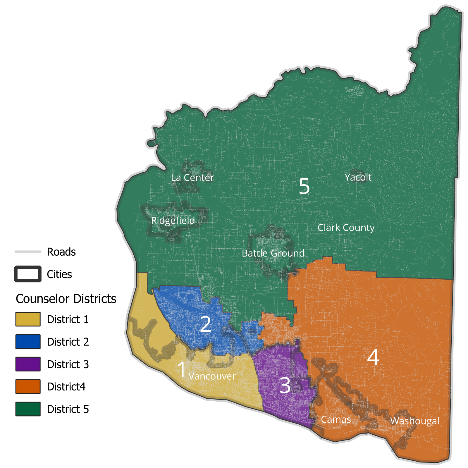 In many counties, charter members may be elected by district or elected at large. In Clark County, they are elected by district. Their job is to